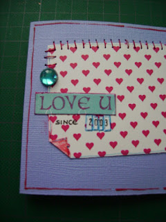 ecco la card per la sfida # 8 di SCC: il cuore timbrato e successivamente embossato è sempre il mio tentativo di timbro hand made, il cuore chipboard l’ho dipinto con l’acrilico rosso; la patterned a cuoricini e il contorno del cuore sono cuciti a mano. Altro acrilico rosso nei bordi.