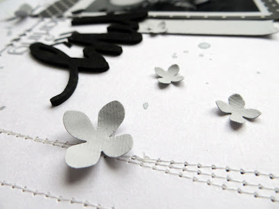 In questo LO ho usato il punch "hydrangea" di Marta Stewart..per quanto ammetto di non amare le ortensie prese nel loro insieme, adoro i fiorellini presi singolarmente, e questo punch è perfetto per cospargere un progetto di fiori delicati e semplici